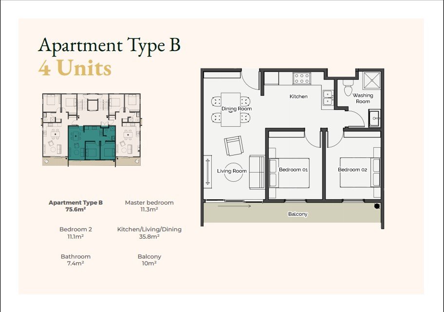 Invest in an urban chic apartment, perfectly located just 5–10 minutes from key